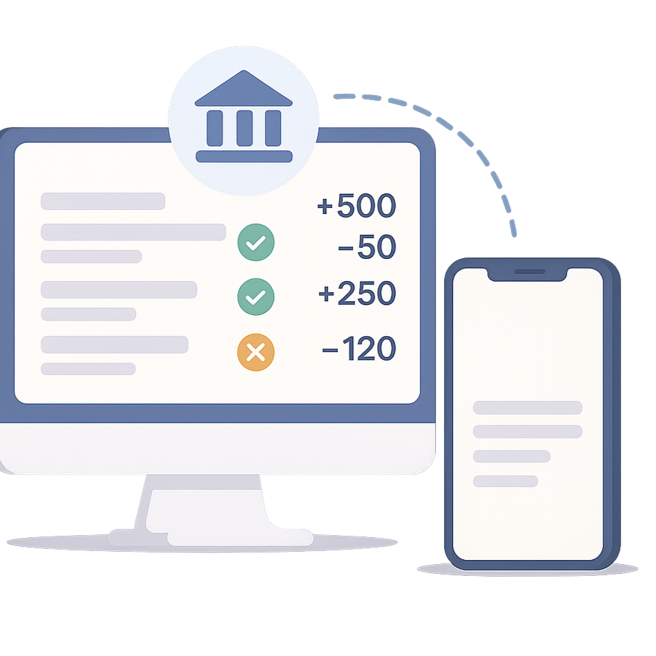 Conecte sua conta e veja tudo bater.Compare os lançamentos escaneados com os dados reais do seu banco.Compatível com Open Finance (Pix, cartão, débito etc).